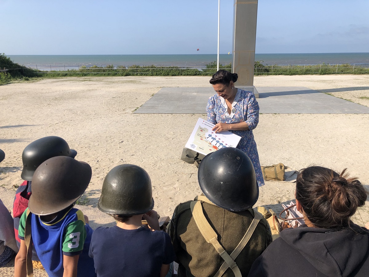 Corine Vervaeke, guide conférencière, se présente comme un témoin du temps. Au cœur de l’humain et avec des objets d’époque, elle vous entraine dans le quotidien des hommes et de femmes qui ont vécu le Jour-J. Les enfants touchent du doigt l’histoire et les adultes plongent dans un moment d’émotion en immersion.