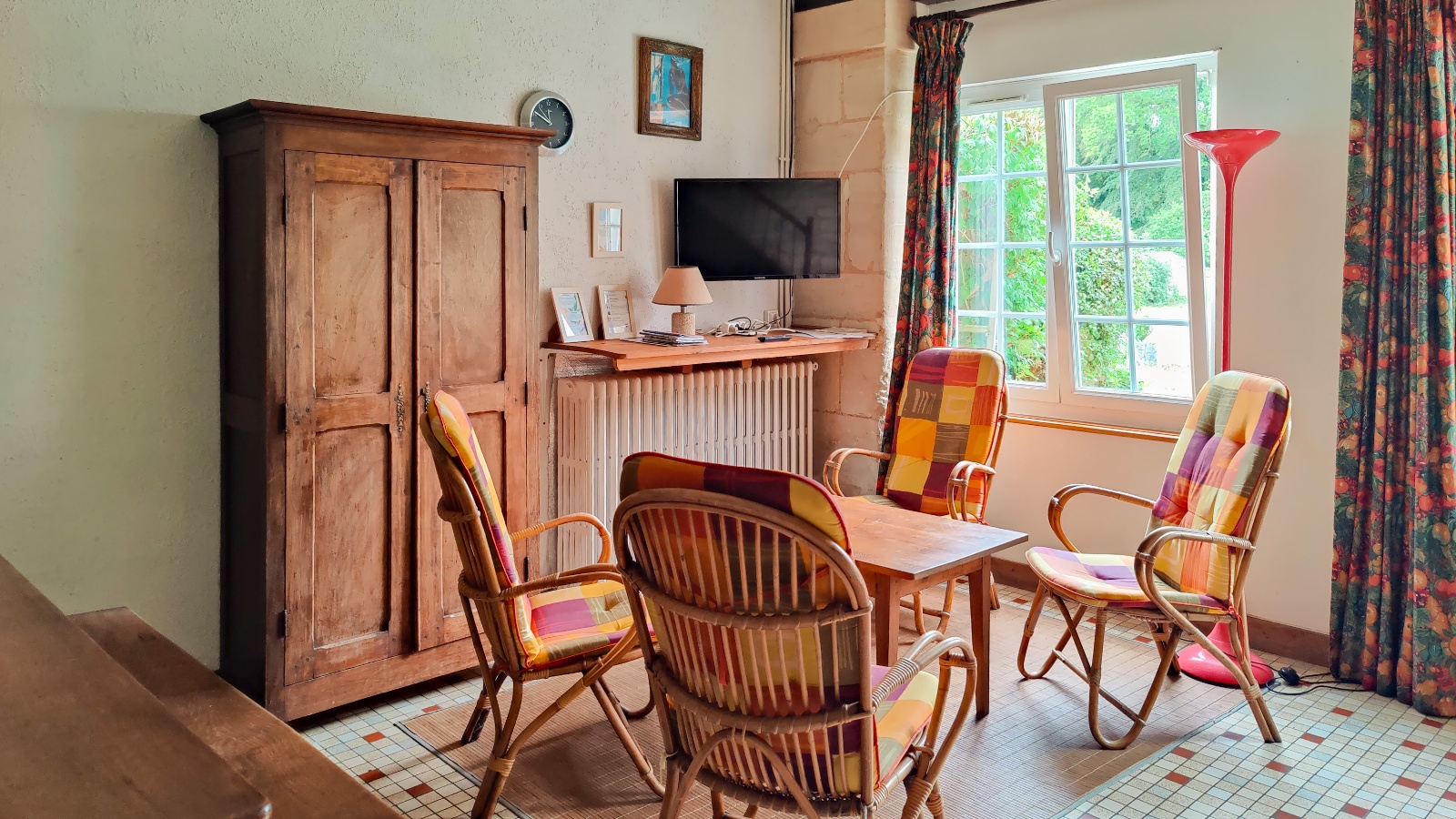 Ce gîte est situé dans un hameau typique du Bessin. Il a conservé un côté très authentique tout en offrant le confort pour un séjour de vacances. Les enfants profiteront des nombreux jeux extérieurs, des animaux. A la sortie de la propriété, des chemins de randonnée parcourent les environs très riches en patrimoine bâti : Creully, Amblie, le château de Fontaine-Henry. A 15 minutes des grandes plages de Courseulles sur Mer et d’Arromanches, de la cité historique de Bayeux. 2 gîtes sur la propriété. Gîte mitoyen au logement du propriétaire R-d-c : séjour avec coin cuisine, fauteuils. Etage : 2 chambres (1 lit 2 pers, 3 lits 1 pers), salle d’eau, wc. Chauffage central. Lave-linge commun. TV. Cour commune avec salon de jardin. Terrasse en bois indépendante au 1er étage avec salon de jardin. Portique. Accès internet commun .